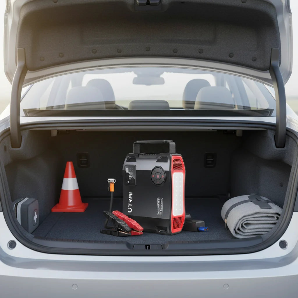 No more roadside worries! The UTRAI 4-in-1 jump starter keeps your family safe and your adventures smooth, always ready for anything.